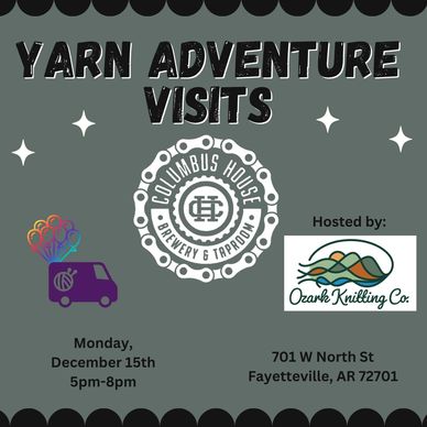 We are excited to visit some local stitchers in Fayetteville, Arkansas, at Columbus House Brewery on December 15th from 5pm-8pm. Ozark Knitting Co hosts a Monday evening meetup, and we are glad to be a part of it in December. Come out and shop our yarn store on wheels, grab a pint, and hang out with some fellow crafters for a fun evening!