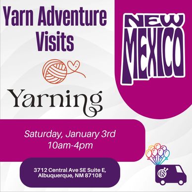 Yarn Adventure returns to New Mexico! Come visit us on Saturday, January 3rd at Yarning in Albuquerque. We loved our visit last year, and we are excited to be back. Come see us from 10am-4pm for some Yarn Adventure fun!